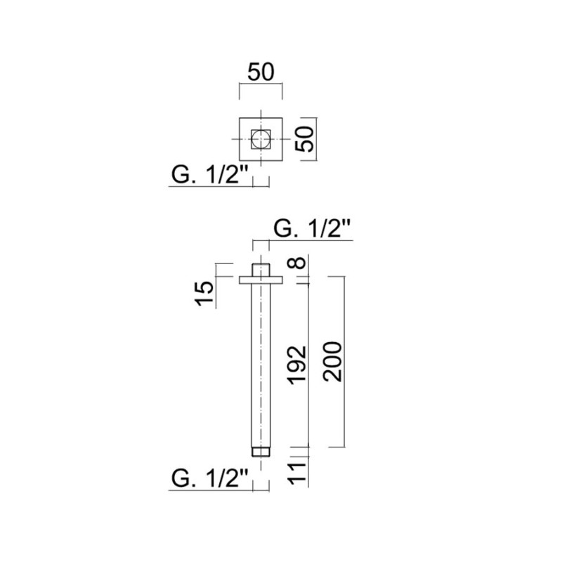 Product Name: Square Ceiling Shower Arm in Brass, 200, 300 mm, with Rosette