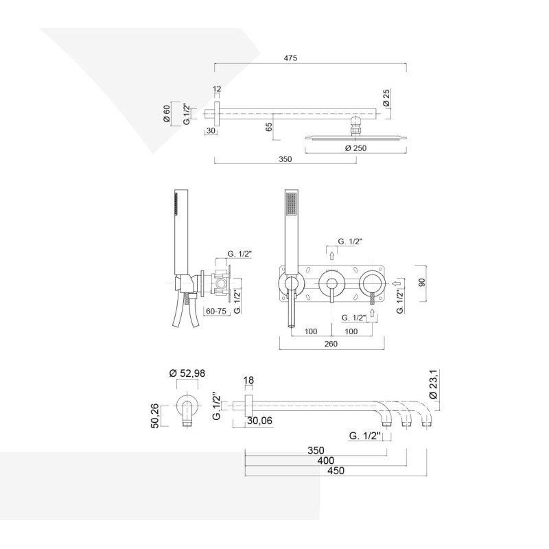 Product Name: Built-in single-control shower set with diverter, duplex kit, wall spout, arm with stainless steel shower head, My Future Deluxe