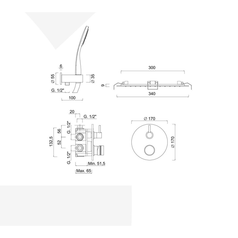 Product Name: Single-lever built-in shower set with diverter, duplex kit, built-in stainless steel shower head d. 340, MyRing Deluxe