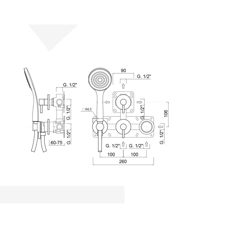 With built-in part GGBOX 5305, rotation diverter, shower kit predisposition, 4 free outlets