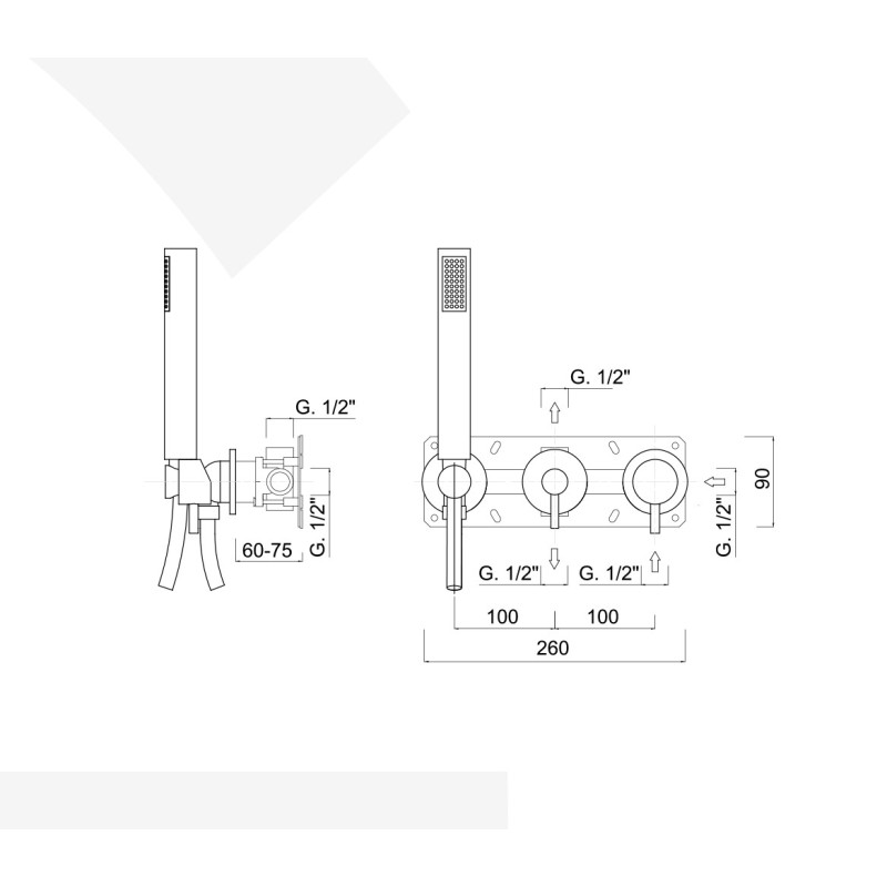 Product Name: Built-in shower mixer with diverter, integrated duplex kit, 2 free outlets, My Future