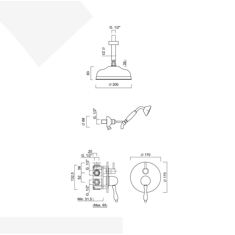 Product Name: Built-in shower set, single-lever with rotary diverter, duplex kit, ceiling shower head D. 200, Praga Mix