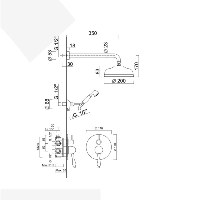 Curved, with round escutcheon diameter 170 mm 53 mm