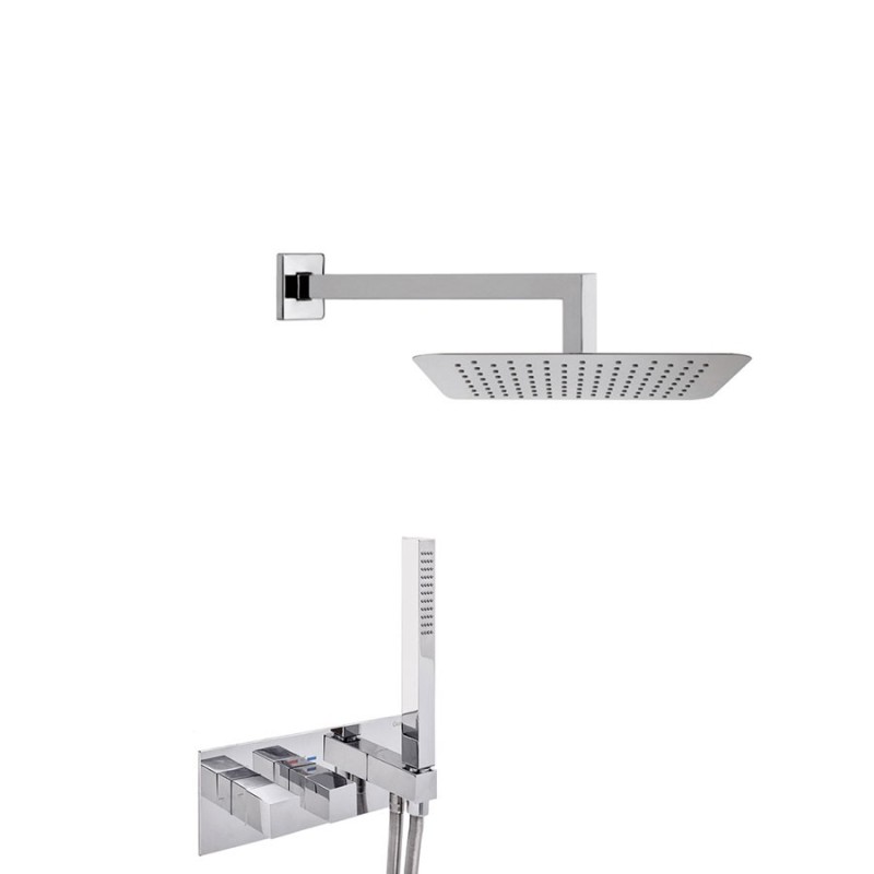 Product Name: Built-in square shower set, thermostatic with diverter, duplex kit, arm and 250 x 250 mm stainless steel shower head