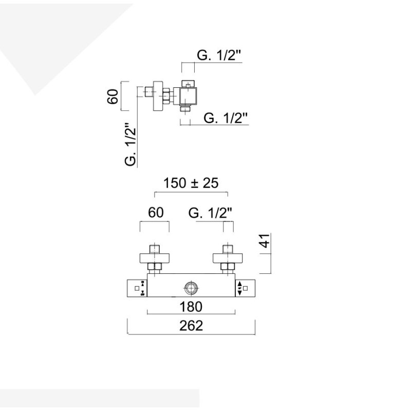 Product Name: Square external thermostatic shower mixer with built-in diverter, 3/4" upper connection, 1/2" lower connection