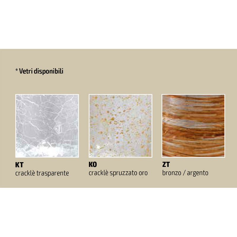 Designed for those who love tradition and appreciate warm shades, Armonia offers glass inserts with handcrafted decorations such as transparent Crackle, gold-sprayed Crackle and bronze/silver.