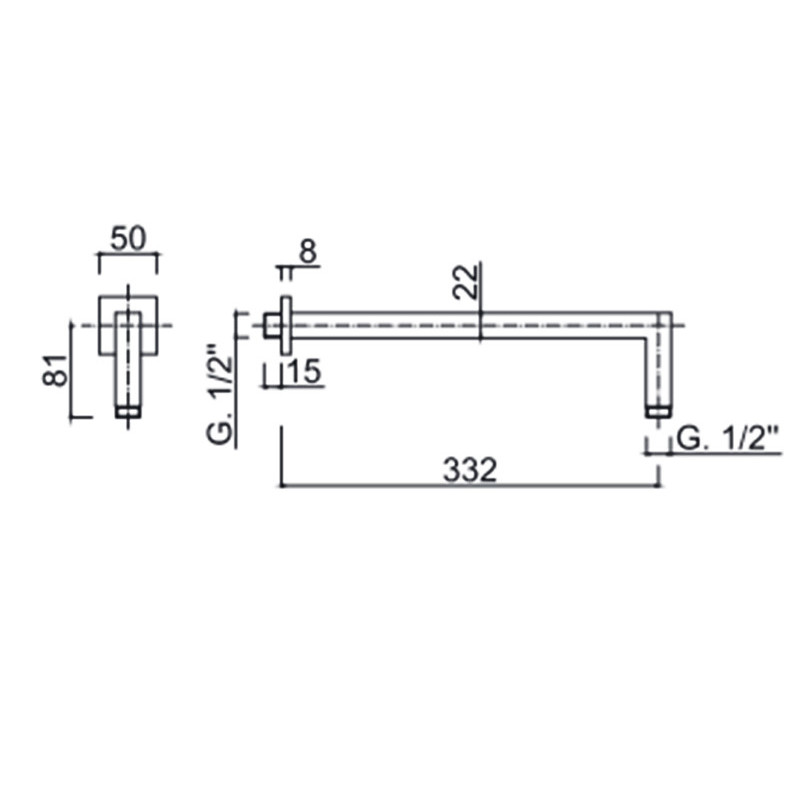 Nome prodotto: Braccio doccia quadrato in ottone, 330 mm