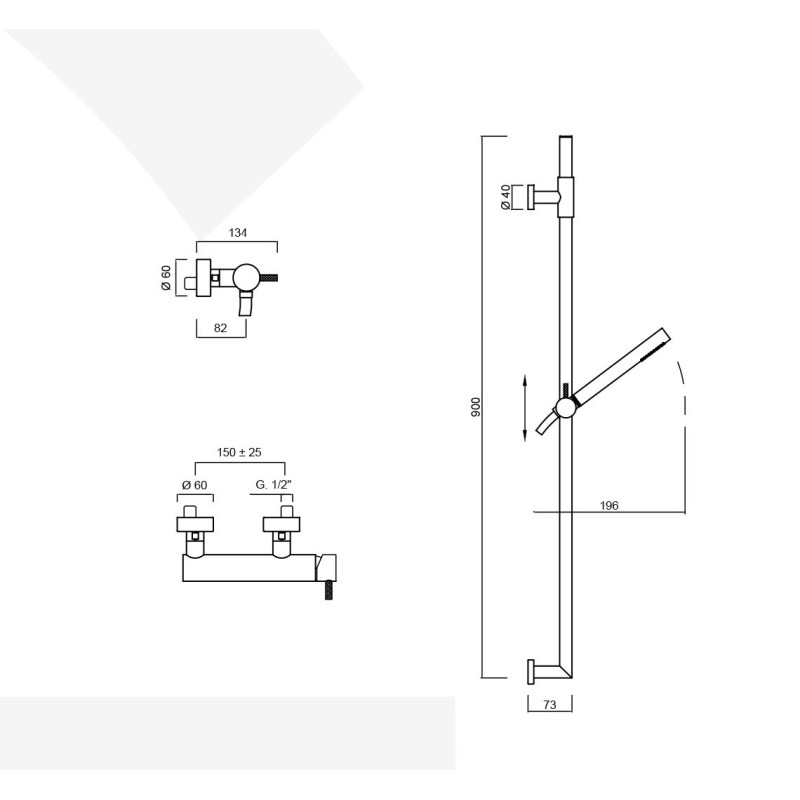 Nome prodotto: Monocomando doccia esterno con saliscendi e doccia, My Future Deluxe