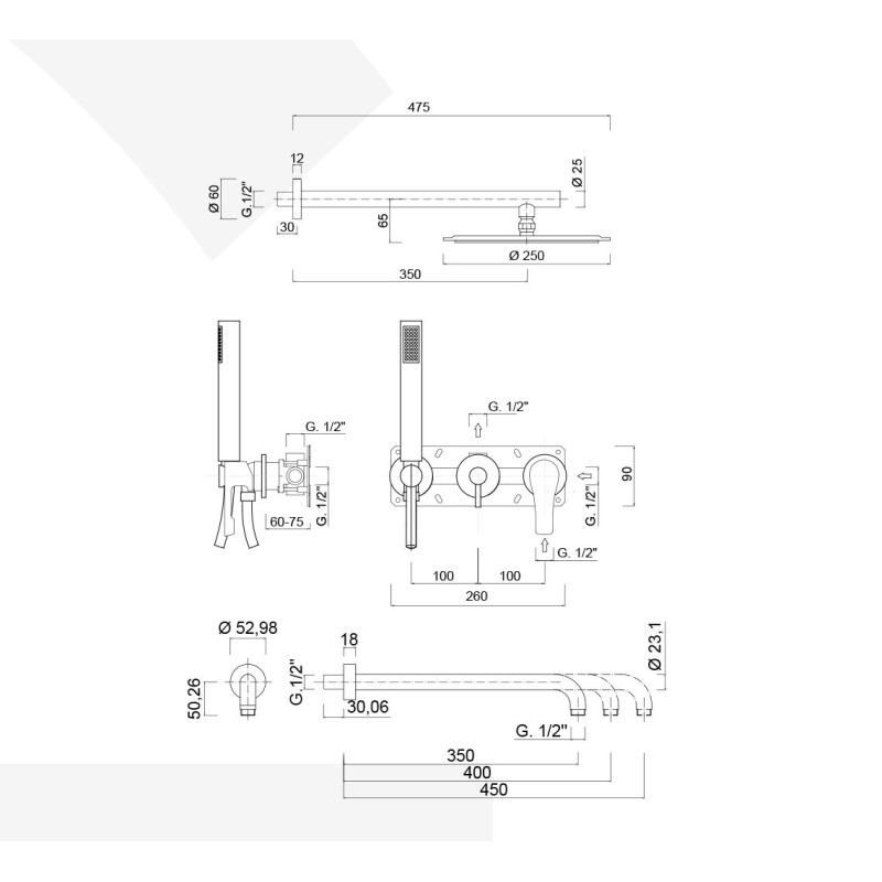 Misure: Braccio+soffione 475 mm