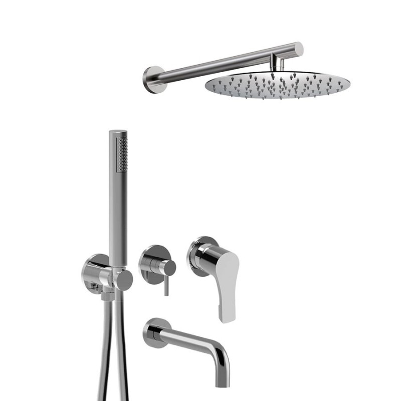 Set doccia incasso monocomando con deviatore, kit duplex, bocca parete, braccio con soffione inox, EGO