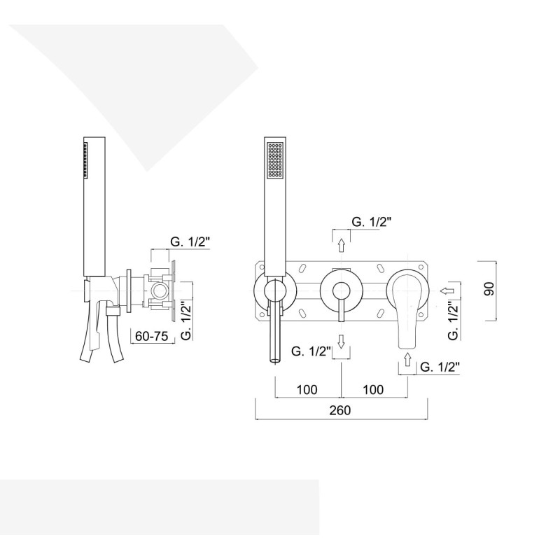 Con parte incasso GGBOX 5302, deviatore a rotazione, predisposizione kit doccia, 2 uscite libere.