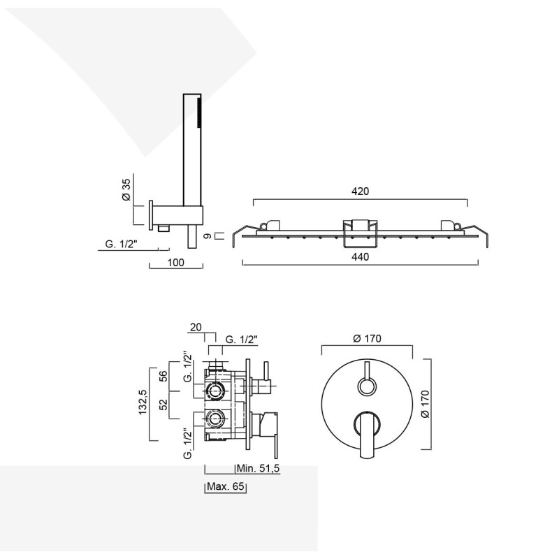 Nome prodotto: Set doccia incasso monocomando con deviatore, kit duplex, soffione incasso getto pioggia e laminare, Surf