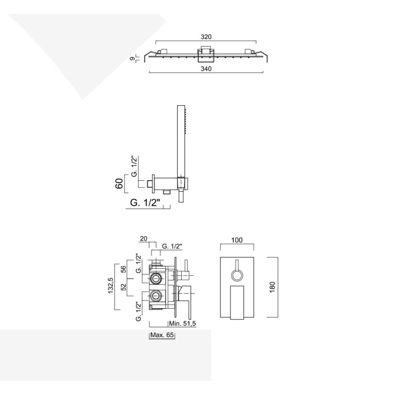 Nome prodotto: Set doccia incasso monocomando con deviatore, kit duplex, soffione incasso, Pablolux