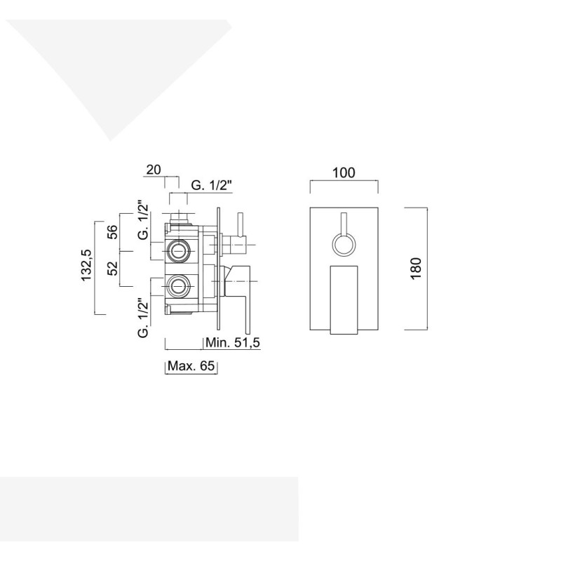 Monocomando doccia incasso con deviatore a rotazione 3 uscite, Pablolux