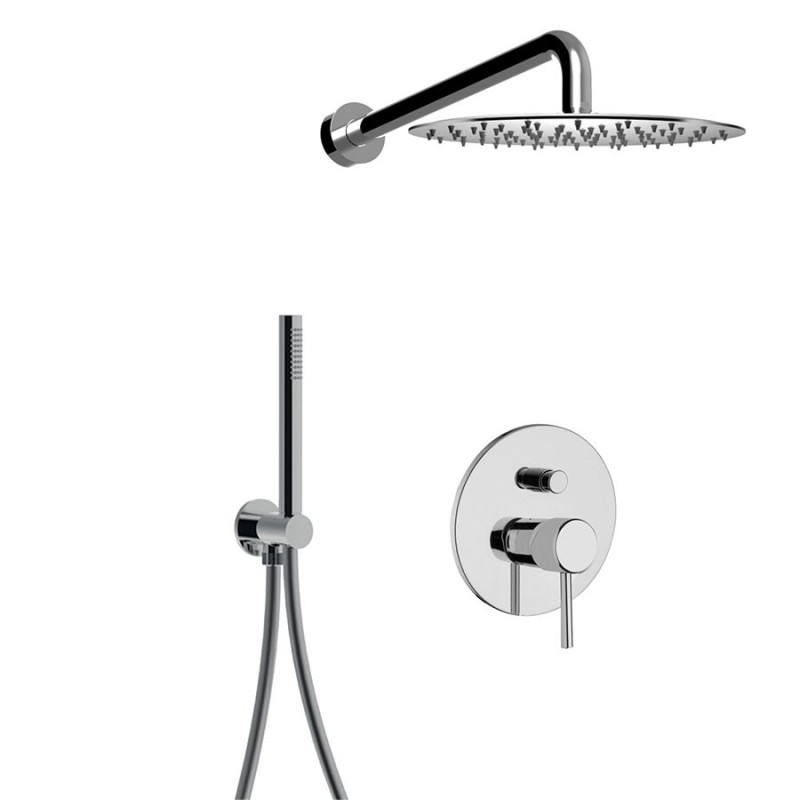 Set doccia incasso monocomando con deviatore a pulsante, kit duplex, braccio con soffione Inox, Futuro