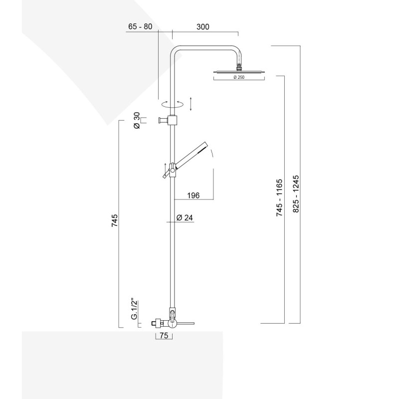 Nome prodotto: Miscelatore esterno con colonna doccia, set doccia completo, soffione Inox d. 250 mm, Futuro