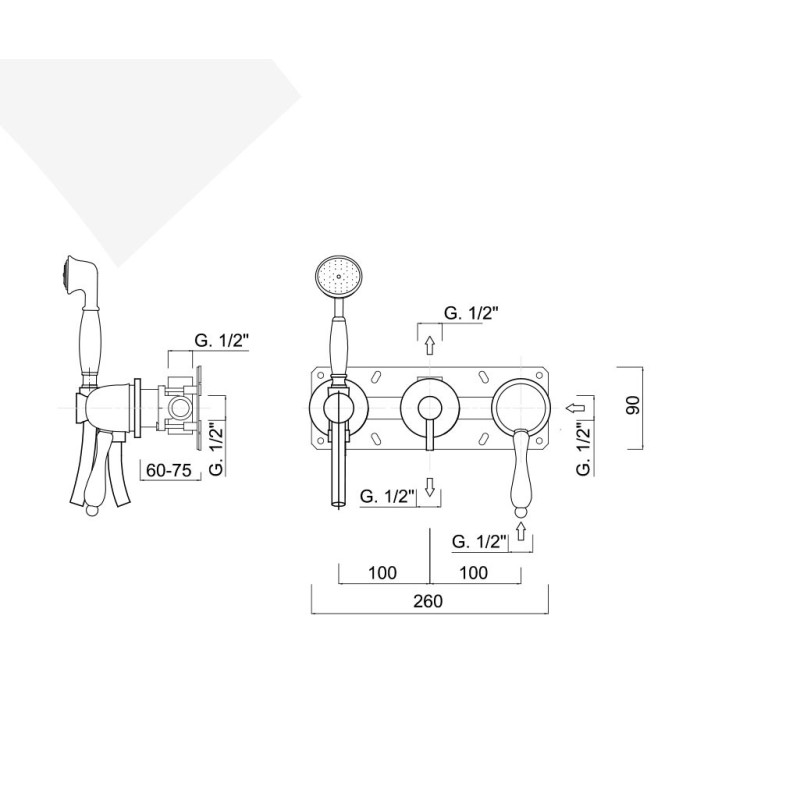 Con supporto doccia a muro,