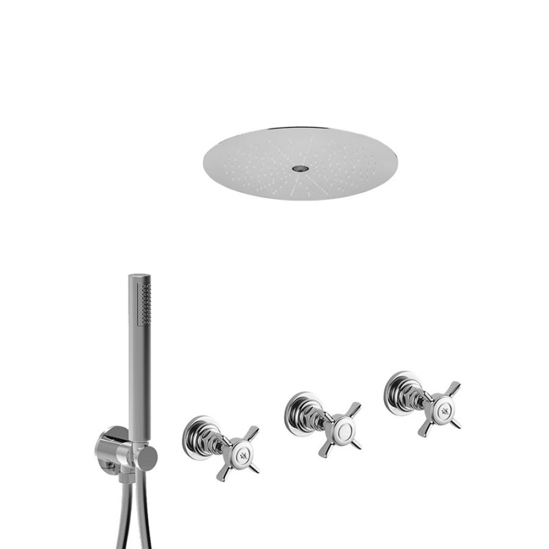 Con parte incasso rubinetti incasso doccia, deviatore a rotazione 3 uscite.