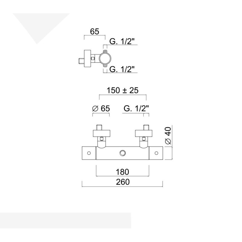 Nome prodotto: Termostatico doccia esterno con deviatore incorporato, attacco superiore 3/4", inferiore 1/2"