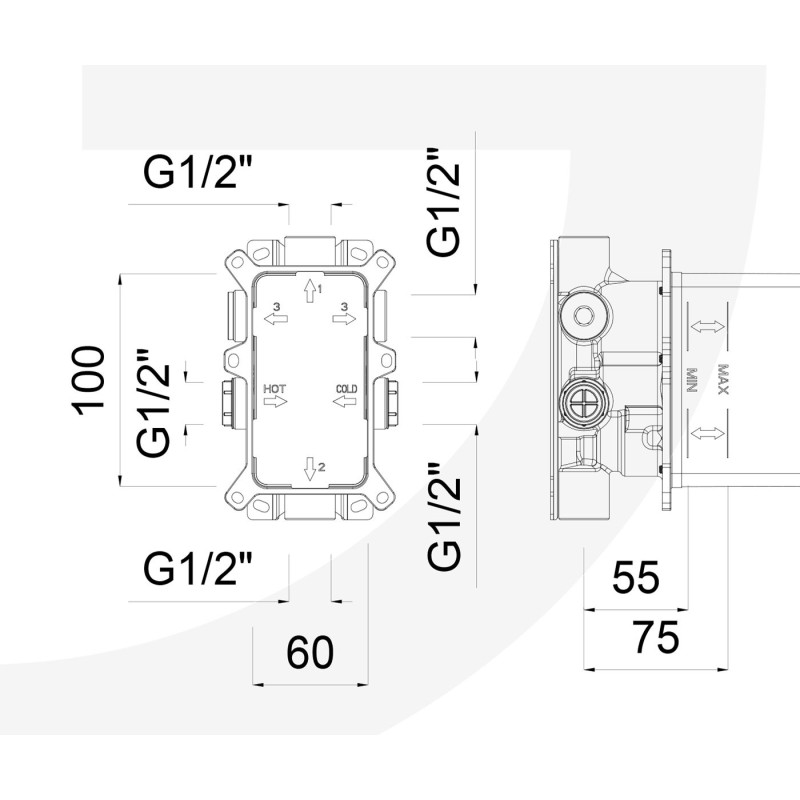Uso: Parte incasso termostatico GGBOX 5292 con deviatore a rotazione 2 uscite, solo per termostatici marchio Rubinetteria Giulini G.