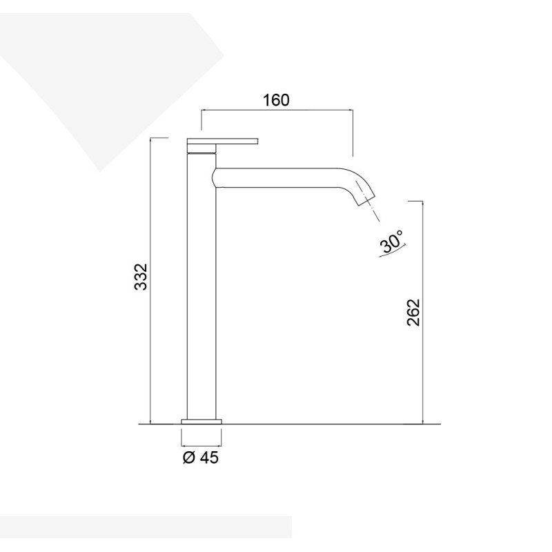 Nome prodotto: Monocomando lavabo alto, bocca lunga in acciaio inox 316L, senza scarico, serie Open