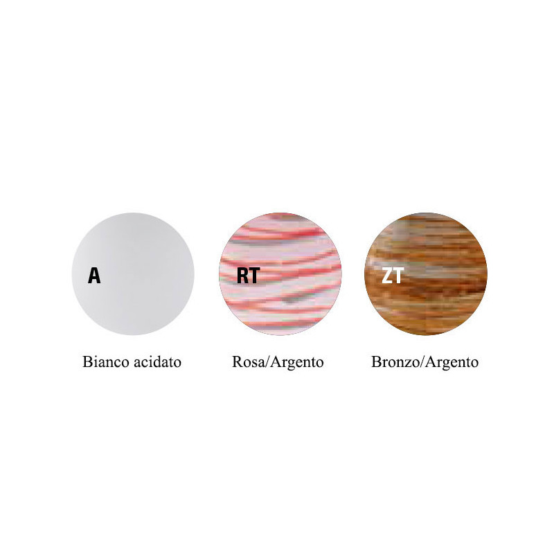 Finiture vetro: A scelta tra Bianco acidato, Rosa argento e Bronzo argento