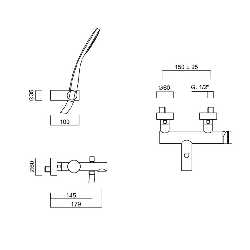 Supporto doccia a parete L. 100 mm, diam. 35 mm