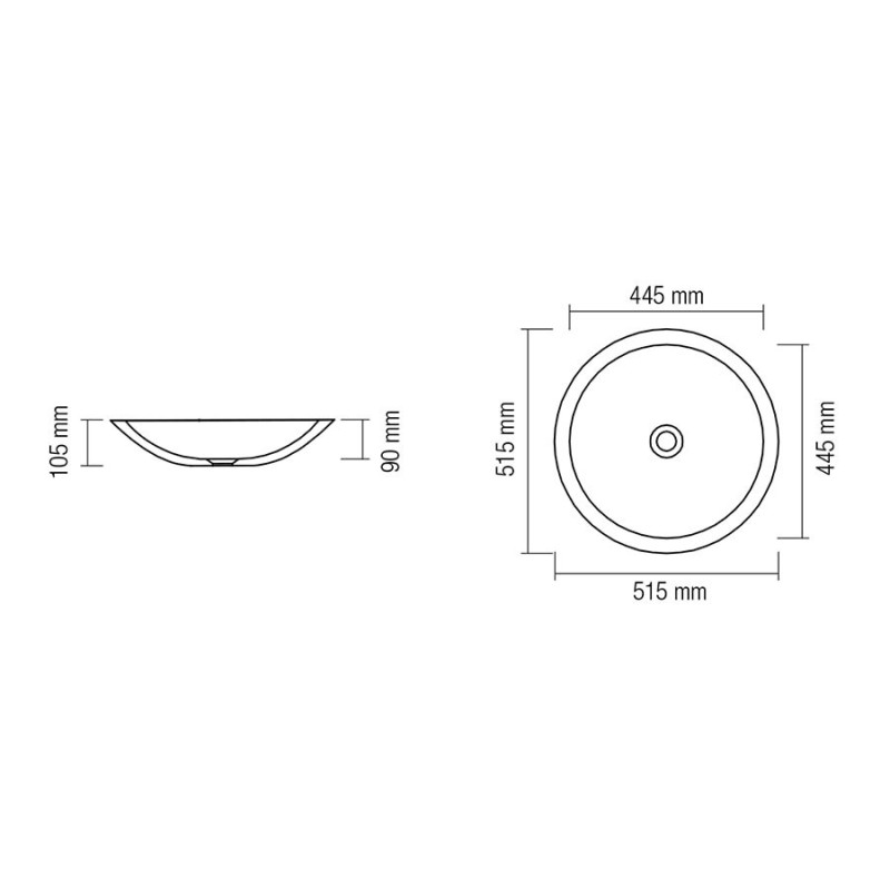 Misure: L. 515 mm x P. 515 mm x H. 105 mm (guarda scheda tecnica).