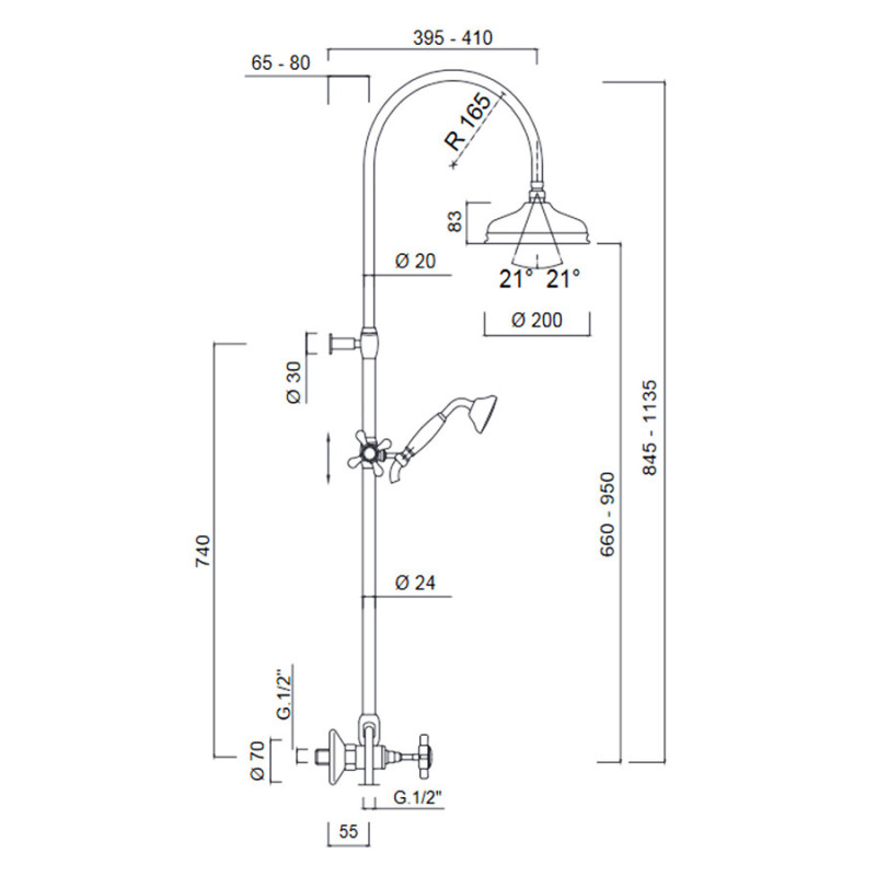 Con colonna doccia tonda in ottone 845-1135 / 660-950 mm